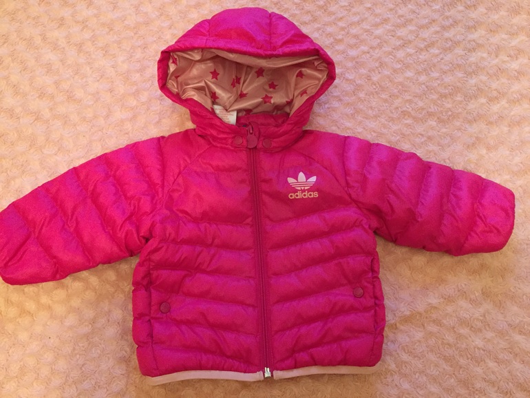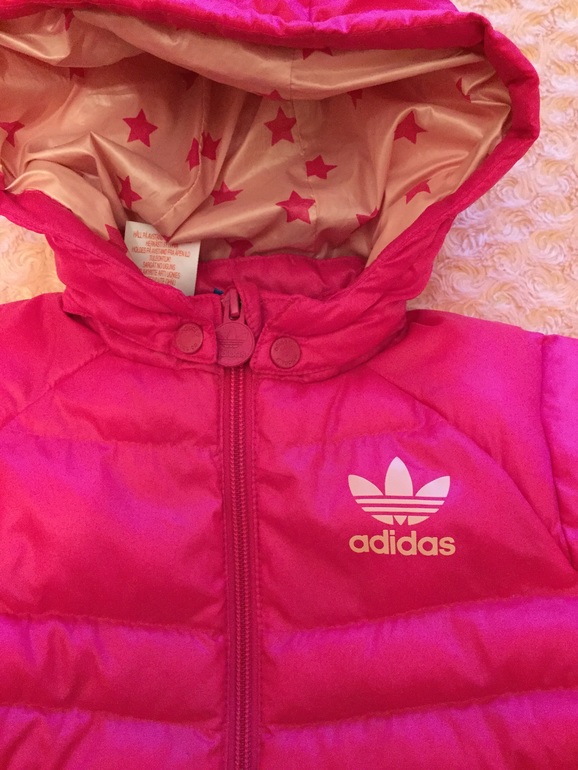 Пуховик Адидас( оригинал) р. 6-9мес. 74 см, по мне немного большемерит, носили до роста 83, до 1,6. 1500р.