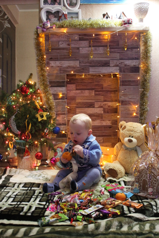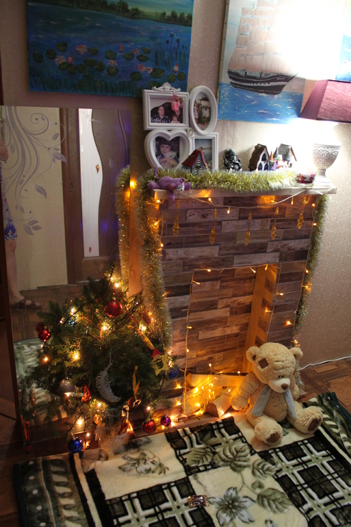Под новый год мы все разболелись...сначала дочка, потом Иван,потом я, а потом и муж ....Ивану 2 раза вызывала скорую, была дикая температура. Стало легче только за 2 дня до нового года. И решила я создать новогоднюю атмосферу в нашей наполовину отремонтированной квартире. И сделала камин, быстро за пару часов.