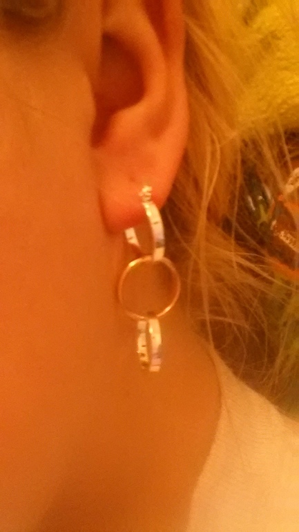 Миленькие сережки, состоящие из 3-х колец, двух серебряных и одного золотого. Смотрятся классно, не обычно.