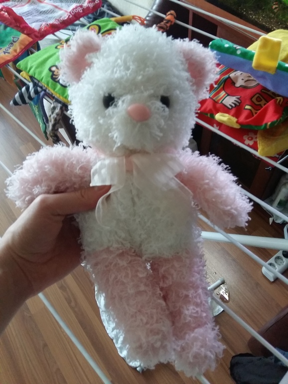 - Постирала подарки от подруги: мягкую игрушку и сенсорные книжки. До этого мне было лень! Кстати, игрушка - очаровательный мишка. Я равнодушна к медведям, но этот мне очень пришелся по душе! Такой девочковый)