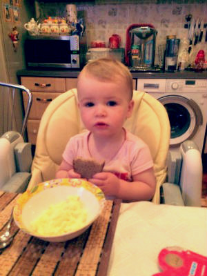 - На завтрак мы едим кашу, любим овсянку и манку, на обед - суп или второе блюдо, например, картофельное пюре с рыбой или вермишель с паровой котлетой, а овощной салат прекрасно дополняет наш дневной рацион. На полдник, после дневного сна, я даю своей дочери что-нибудь легкое, например, омлет, творожок, фруктовое пюре или йогурт. Поужинать мы можем картофелем с котлеткой. В течение дня любим кушать фрукты, овощи и печенье.