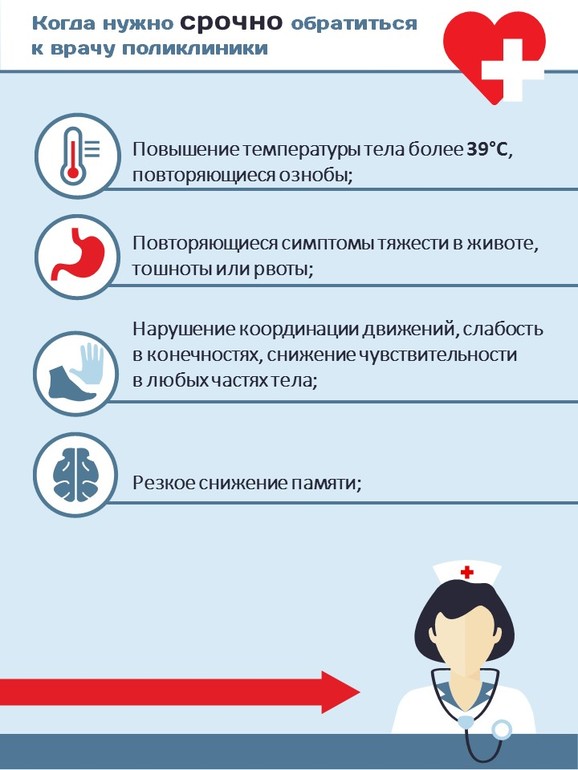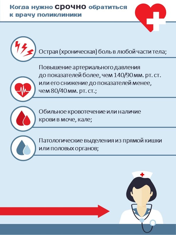 Симптомы, при которых необходимо обратиться к врачу поликлиники: