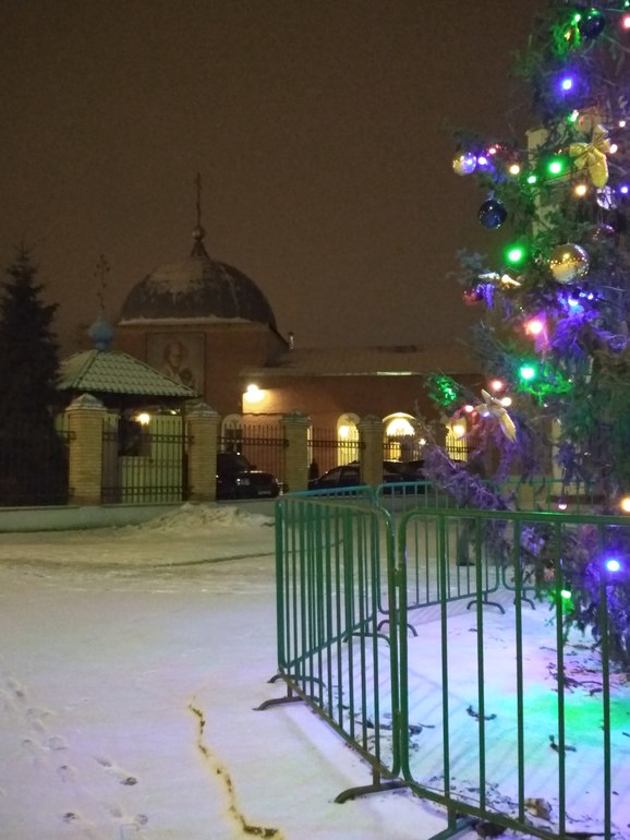 На Рождество была чудесная погода и мы с мужем отстояли всю службу. Вышли и сделали вот такое фото