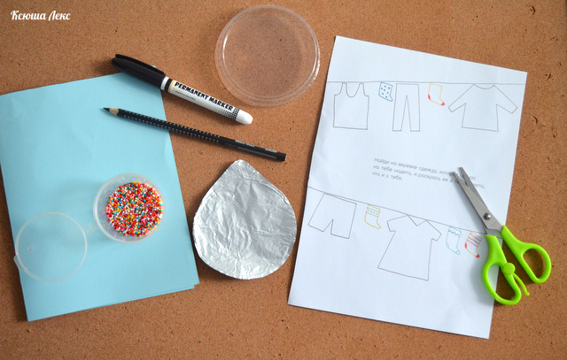 3. Рисуем одежду для "стирки" и пишем папе тайное послание:)!