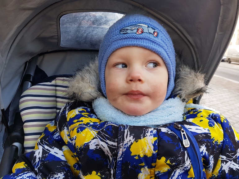 Чумазик, не представляю, где успел так вымазаться, сидя в коляске.