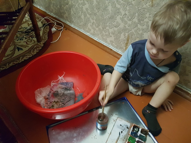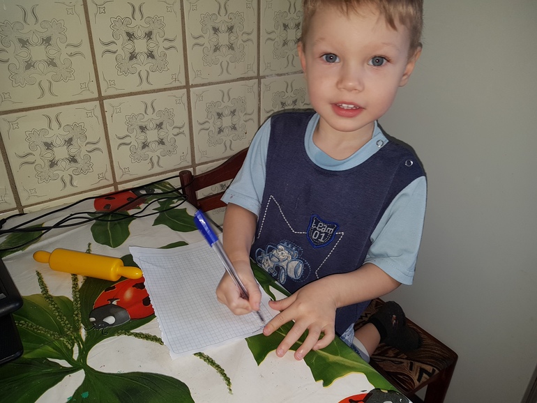 Глееб правильно держит ложку, карандаши, кисточи, причём сам их так берёт. Уже нет необходимости перелаживать как раньше.