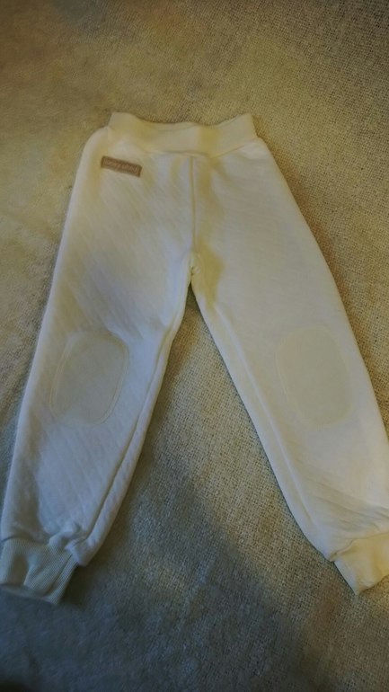 Вот я и докупила к курточке коллекции Кашкорсе штанишки, чтобы был комплект. Штанишки красивого молочного цвета, очень мягкие на ощупь, широкий поясок не дает штанишкам спускаться, но при этом мягенький и не передавливает животик малыша. Штанишки широкие сковывать движения малыша не будут точно. Материал сам прошит нитками, получились квадратики - очень стильно. Справа сверху нашита эмблема фирмы, красиво вписалась. Молочный цвет всегда актуален в моде, хорошо сочетаются с другой одеждой. Состав 100% хлопок в очередной раз только порадовал меня. Ведь натуральные ткани самые лучшие для маленького человечка.
