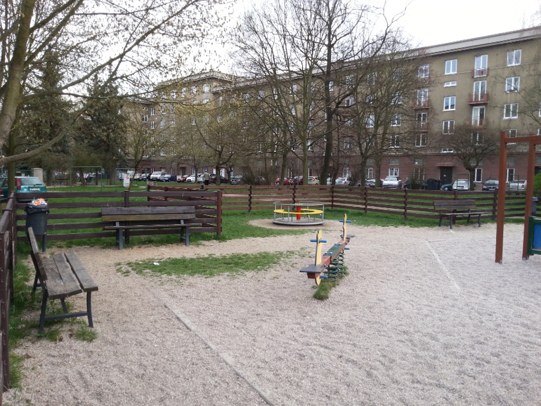 Площадка большая, в небольшом местном парке. Есть для деток побольше и поменьше. Только качелей для совсем малышей нету(( Я пока вообще такую только одну видела на территории летнего бассейна, но просто так там каждый день не погуляешь, вход платный, зимой вообще закрыто. Везде качели на цепях, и то на зиму они везде сняты.