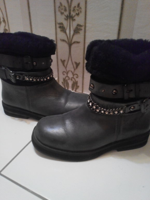 Очень теплые, низ натуральная кожа, верх - замша, вокруг украшение стразами. Одеты 1 раз. Размер 35 на полную ногу, 36 на обычную. 1500 р