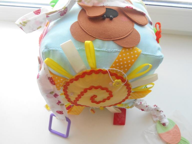 Очень яркий игровой кубик для малышей с 6 месяцев с развивающими элементами.