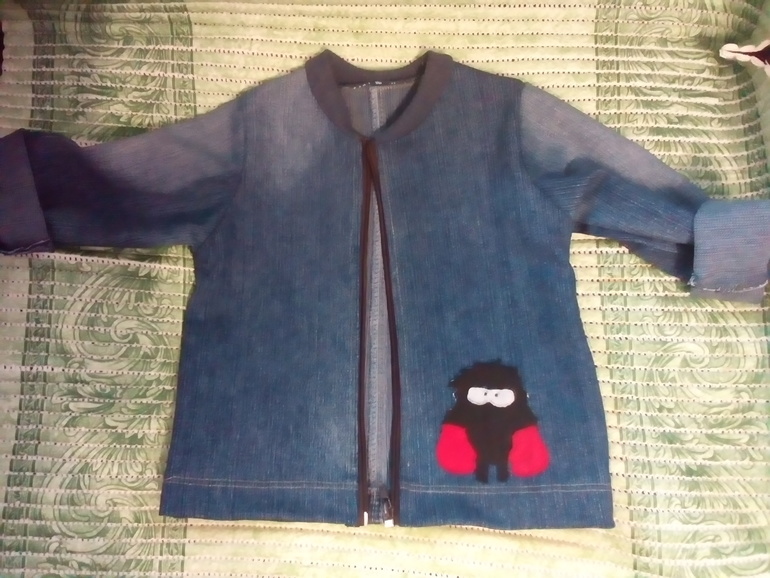 Были джинсы мамы ,стала курточка сына... размер 92.выкройка из интернета. Аппликация из интерлока.