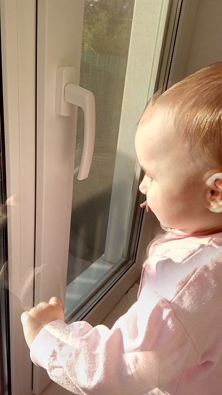 Стоим на окне без рук)) Боже, недавно трлько перевернулась сама, уже стоит! Как время идет! Сделали первые два шага - оторвалась от дивана и пошла!!!
