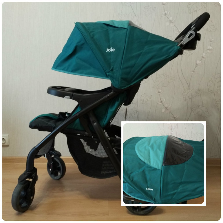 Материал капа у Joovy эластичный, чем-то напоминает танцевальные костюмы для бальных танцев, но более гибкие. У Joie кап из полиэстера и не гибкий, но есть смотровое окошко, которого у Joovy нет. Кап у Joovy выдвигается по механизму гусеницы и очень прикольно выглядит, действительно как яркий воздушный шарик.
