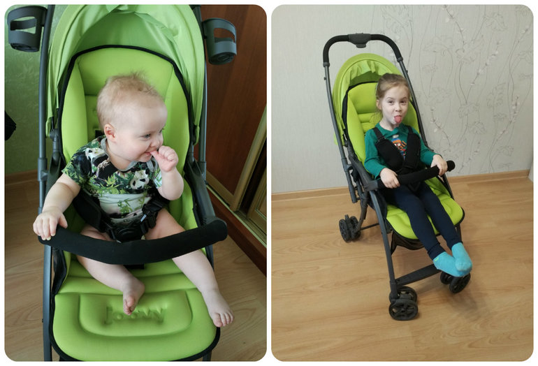 У Joovy здесь более широкий охват: пассажира можно возить с рождения и до 4 лет до 20 кг. А вот у Joie поменьше: пассажир только с 3 месяцев и до 15 кг и 3 лет соответственно. Но моей старшей дочке эти ограничения не помешали - она залезала в обе коляски, когда я делала фотографии. И по параметрам она пока проходит в обе - ей 4,5 года и весит она 14 кг.