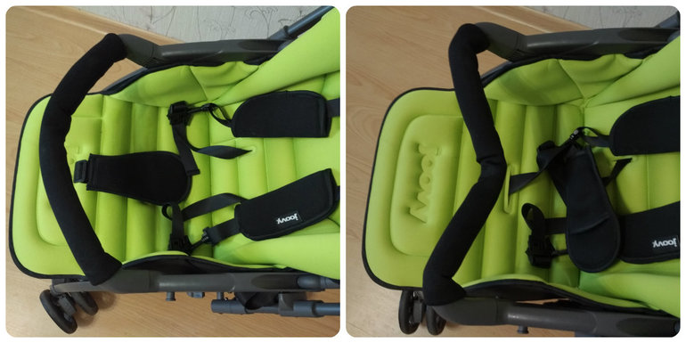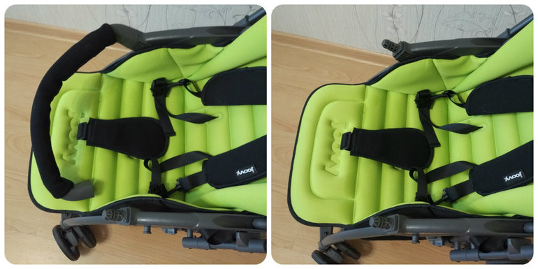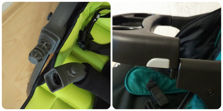 Здесь мне больше по душе механизм Joie, потому как только его мне удобно раскладывать одной рукой. Механизм Joovy тоже удобен при раскладывании, но вот в обратное сидячее положение надо тянуть за ремни, и одной рукой это делать сложновато.