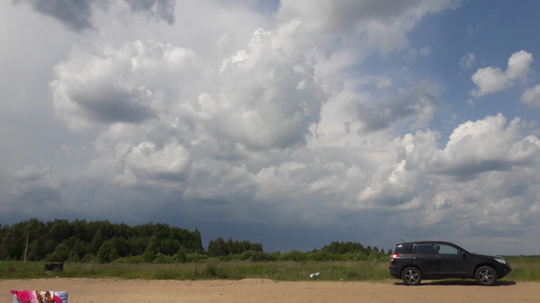 Домой доехать не успели, пошел дождь.