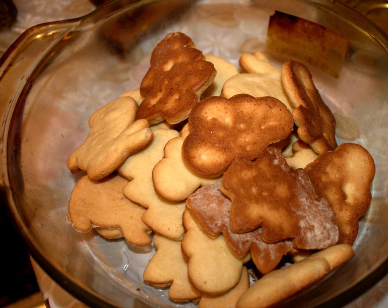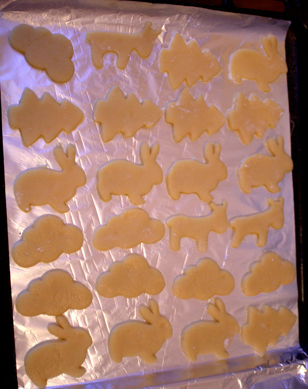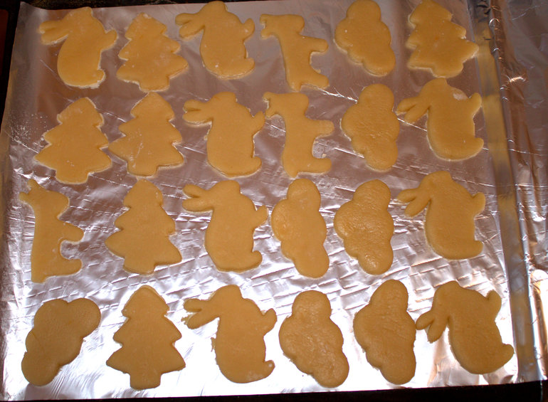Раскатать в пласт, вырезать при помощи фигурок печенье. Выложить на смазанный маслом противень и выпекать при 180 градусах до готовности. Украсить сахарной пудрой и подать на стол.