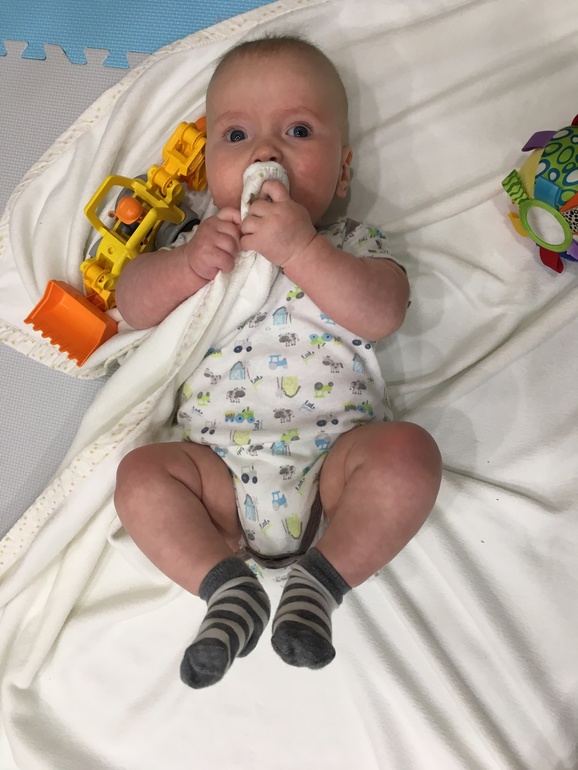 Проблемы: слабый-слабый плечевой пояс, ну вот никак не накачаем. Отсюда и нежелание двигаться. В остальном я довольна этим месяцем, реабилитация идёт ему на пользу, он стал живее, активнее, социальнее, больше интересуется всем в округе, реагирует на всех улыбочками. Глаза косят, но это опять же слабые мышцы, офтальмолог не увидел проблем по его профилю. На 6 месяц огромные надежды