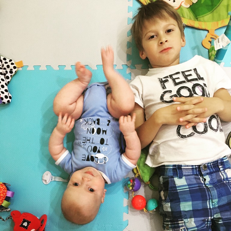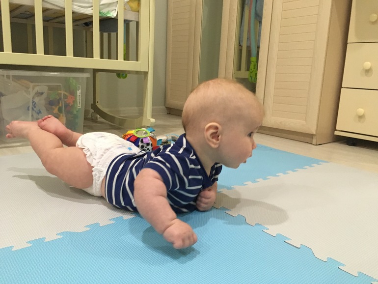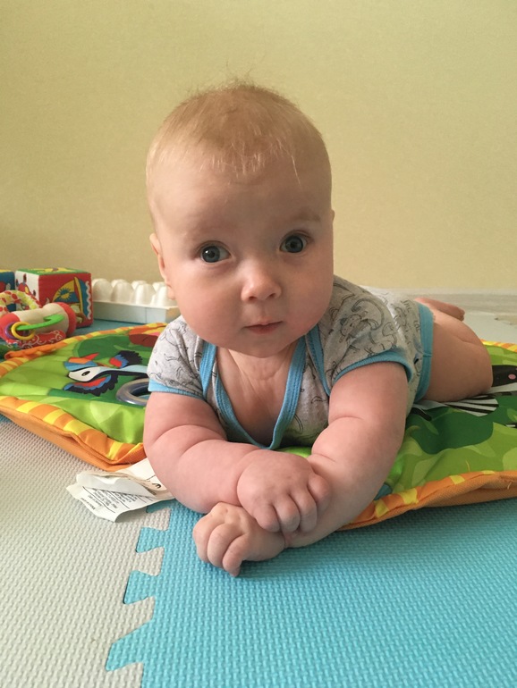 К• Андрей начал переворачиваться активно☺️ Это главное достижение, на спине лежит, конечно, но может спокойно сам поменять положение, обратно получается только случайно. Переворачивается преимущественно через левый бок, правый слабо и редко.