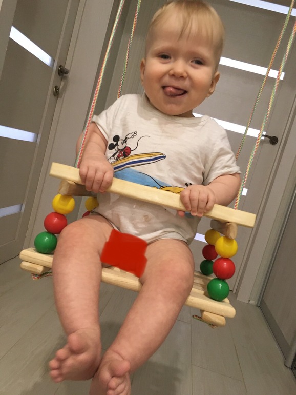 Качели вызвали дикий восторг, пришлось дома повесить, теперь качаемся ежедневно(раскачивается сам немного(кач-кач тоже умеет)