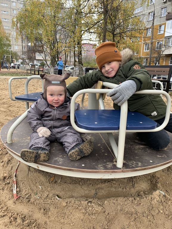 Старший пошёл в школу, но сейчас отправили на каникулы(почти на 3 недели) и якобы 5 ноября выходить, но что-то сомнения гложут. Мы теперь с Андреем минимум 3 раза гуляем: 7.20-8.00 отводим брата в школу, 10.30-12.00 встречаем и гуляем на площадке. 16.30 и тут различные варианты в зависимости от дня недели(пн, ср, пт до 19.00, вт и чт до 17.30). Дела дома начали делаться только с момента ухода старшего на каникулы, до этого времени хватало на мало-мальскую уборку и готовку)