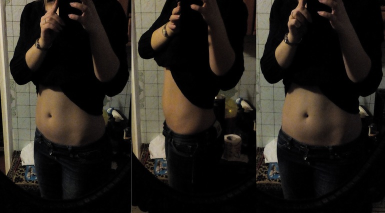 Идет 14 неделя - самочувствие супер, даже забываю, что беременна))) Наконец-то организм позволил пить чай))) На сладкое все еще лишение, но его и не охота))) На фото кажется, что я еще похудела, а пузик округлился внизу немного...