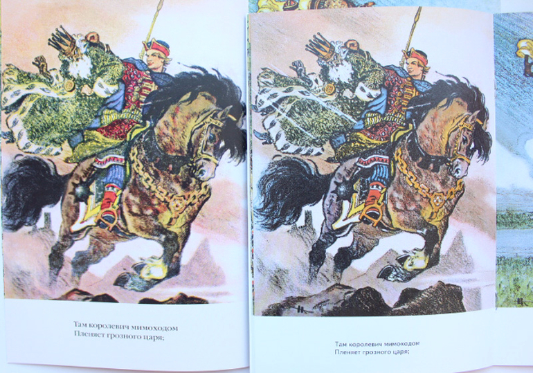 В целом я полностью ЗА "Лукоморье" от Речи. Книгу приятно держать в руках, плотная обложка, плотные листы, четкие и не обрезанные картинки. На ее фоне издание Нигмы смотрится как брошюрка за 20 руб.