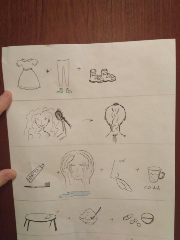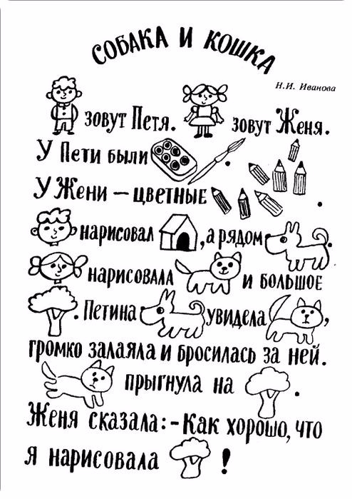 первые я нарисовала, а дальше вспомнила про тексты с картинками вместо слов, которые используют на начальных этапах чтения.