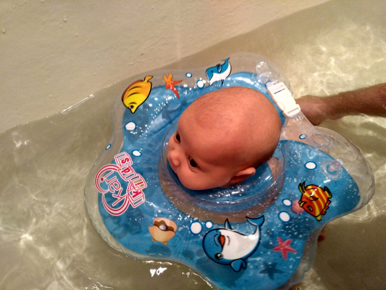 Еще, где-то после месяца, мы начали любить купаться! Закончился этот бесконечный рев )) С кругом или без - уже не важно, просто плюхаемся!