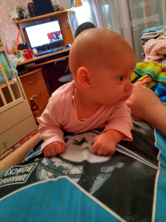 Желтушку мы победили наконец-то, боремся с гемоглобином и глазками. Надеюсь, что скоро и это вылечим. Доченька каждый день радует маму и папу, ну и конечно же везде сующих свой нос, бабушку и дедушку...