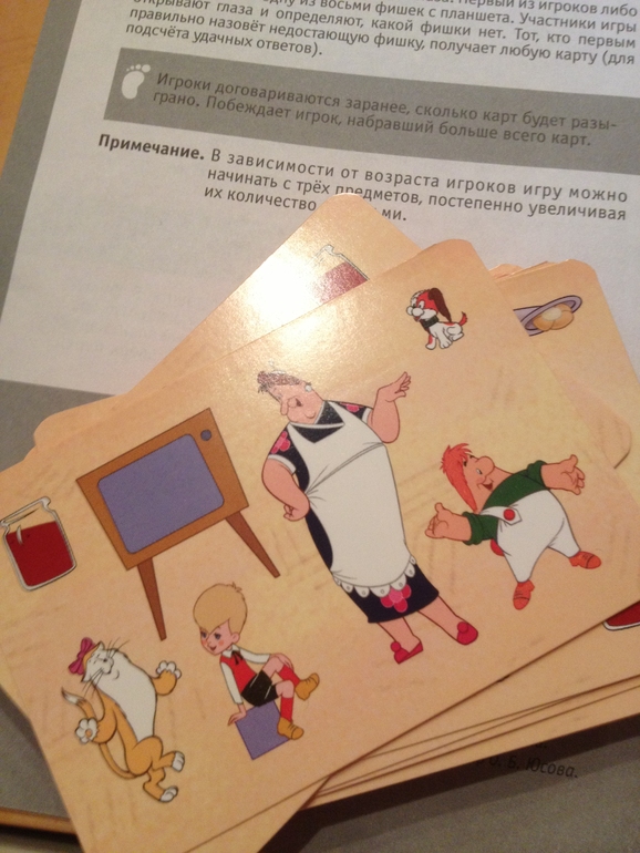 Играли с сыном 2,2 - вполне получилось. Мы, конечно, не соревновались, а просто учились вдвоем определять, чего же не достает на карточке, но все равно получили удовольствие.