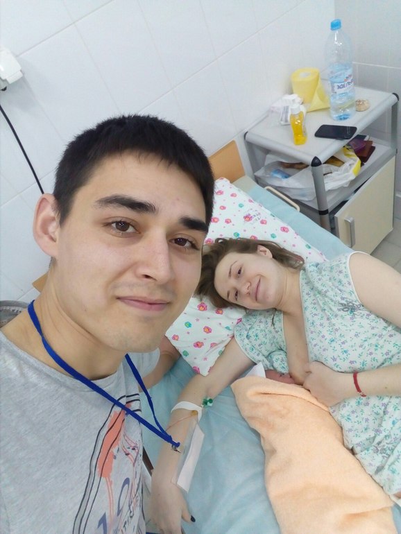 . Я ходила на курсы, смотрела видео, в общем настрой был боевой и на вертикальные роды. С таким настроем я и рожала😊 хотела с мужем, он единственный тут родной и близкий человек, но поначалу он боялся, со временем сам начал говорить "пойду не брошу тебя". Так вот за три дня до родов заболели зубы, это треш был, плакала, так и знала, что роды начнутся в неподходящий момент. Записались на 9 в клинику ( день родов). Утром в четверг наревелась, намыла полы(неделю мыла на корячках)))) , погладила белье. В 7 вечера начало тянуть живот интервалы 15,10,8 мин по 1 минуте примерно. Было не больно. Я включила счетчик. Смотрели фильм, я больше на зубную боль реагировала, не думала, что это схватки. В 12 пошли спать, также все, сходила в душ, думаю отпустит может и голову помыть " вдруг в роддом, с грязной головой не поеду😃". Не отпустило. Только заснула, чувствую не то что-то, отошла пробка время 1 час. Разбудила мужа, начали собираться, прихватывало чуть сильнее, но спина начала болеть.Тут сразу поняла оно! В общем в родовую палату я попала в 4 часа. Такие ж схватки были, мужа домой отправила, раскрытие 3 см было. Но поспать так и не смогла. В соседних блоках орали как резанные и честно страшно становилось. В 7.30 раскрытие 6 см, схватки 4-5 мин, боль не сильная ну как на месячные. В 11 приехал муж, мы смеялись болтали) спрашивал "ты рожаешь нет?", когда в других блоках орали просто, я дышала. В 11.30 пришел Пахомов Илья Викторович(принимал роды, рожала бесплатно, но слышали отзывы хорошие "врач от Бога", увидели его и обрадовались), сказал к 14 часам родим( до этого приходил говорил к 12 ))))с врачом до конца болтали как друзья и шутили, особенно когда я выдала "ну вот и масло для промежности не помогло от эпизио")))))))))))). Тут помогли мне вскрыть пузырь и началась жопа😃 муж пытался массировать спину, но мне только плохо было. Сказала ему просто рядом стой и молчи(он подбадривал се хорошо будет, дыши), водичку подавай. Меня тужило конкретно.Хотелось по всякому в туалет)))) водил меня в душ. Во время схватки мне легче было на коленках на полу или оперевшись на подоконник,дышала воздухом. говорят фитбол хорошо помогает, но мне плохо на нем было, только стоя хорошо.Несколько раз врача звал муж, он говорил еще не тужит врёшь))) говорила мужу на схватке , что не смогу родить😭он мне втык давал и я собиралась. Врачу говорила "Илья Викторович, когда рожу, когда это кончится?". Он подбадривал. В 13 часов решили начать тужиться вертикально, муж решил остаться, я против была, но уже сказала ему"делай что хочешь". Пришла акушерка и начали, я так рада была))) К 14 часам обещали все закончится. Это был кайф, очень легко было на схватках, лежа не могла. Через 30 мин я устала и не могла больше, процесс плохо двигался, головка не шла, хотя я старалась. Пришел Пахомов решили лежа, посмотрел и сказал " у тебя анатомически специфическая промежность и узкая, + внутри там где копчик какая то в тазу шишка и головка не можете пройти ее. Без разрывов не родишь, если бы этого не было давно вертикально родили,а время идет ". Ок. Головке помогла пройти, схватки стали пропадать, вкололи окситоцина, дело немного пошло, но родовая деятельность слабая.Муж рядом. Я устала. Обезболивающее не делали, мне тогда норм было, а когда дело пошло , то поздно было. Сказали я герой))) трудились мы два часа, это был ад..Пахомов не отходил ни на шаг, ему звонили, он говорил,