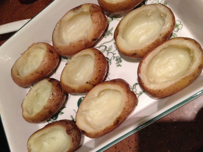 2) Остужаем, вырезаем чайной ложкой лодочку.