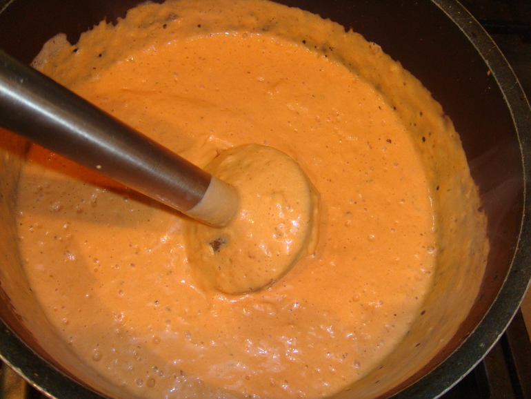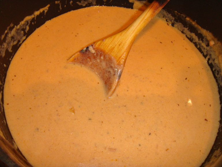 Вылить смесь в соус и уварить до желаемой консистенции: