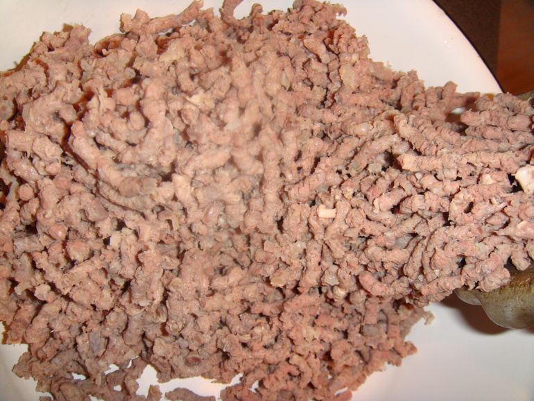 Добавить кусочки печенки, посолить, обжарить до готовности. Остудить и провернуть через мясорубку: