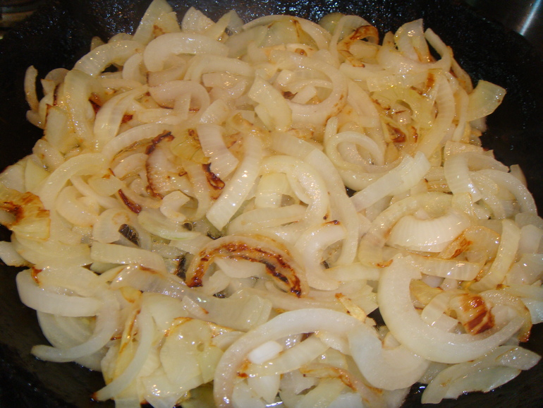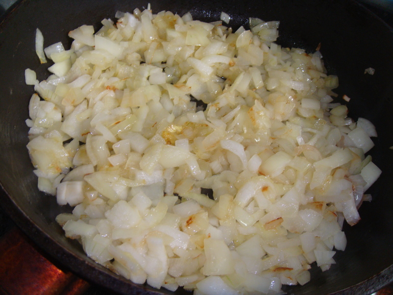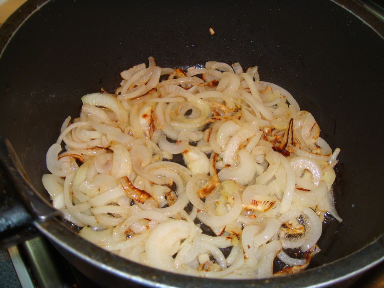В это время приготовить соус. Спассеровать 3 луковицы:
