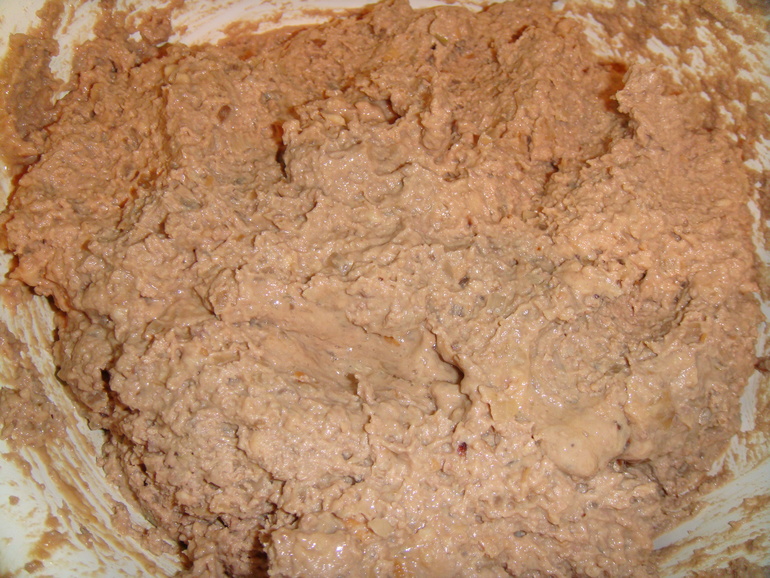 Соединить молотую печенку со сливками, взбить венчиком, досолить по вкусу: