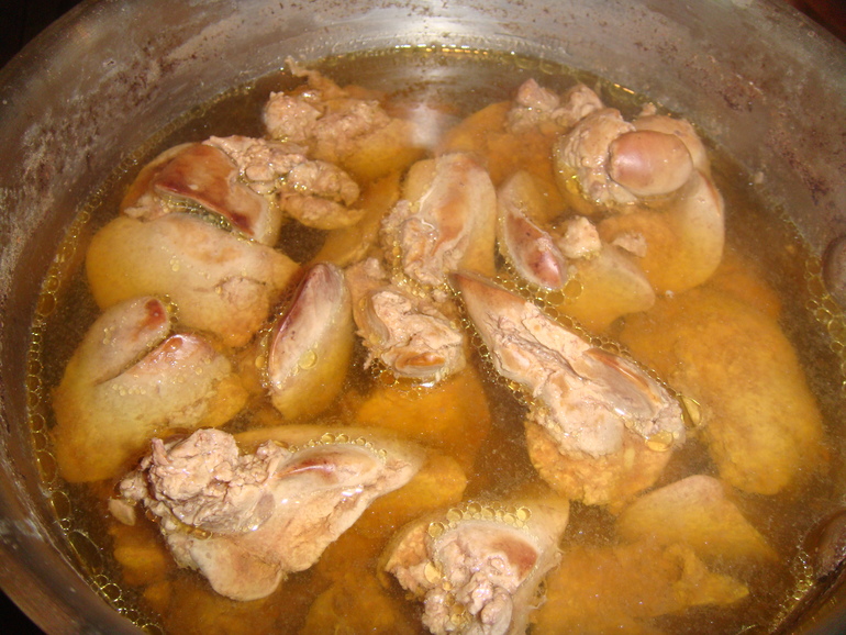 Это значит, что встречаются желудки с камнями и темными пленками, которые надо тщательно вычистить: