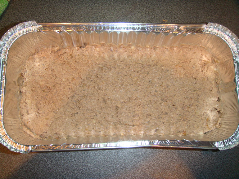 Провернуть через мясорубку печенку, обжаренный лук, отжатую булку. Добавить 1 яйцо, добавить немного соли, тщательно перемешать: