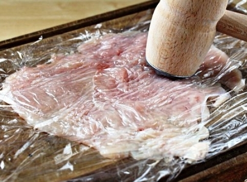 Большое филе отбить через пленку до толщины в 0,5 см:
