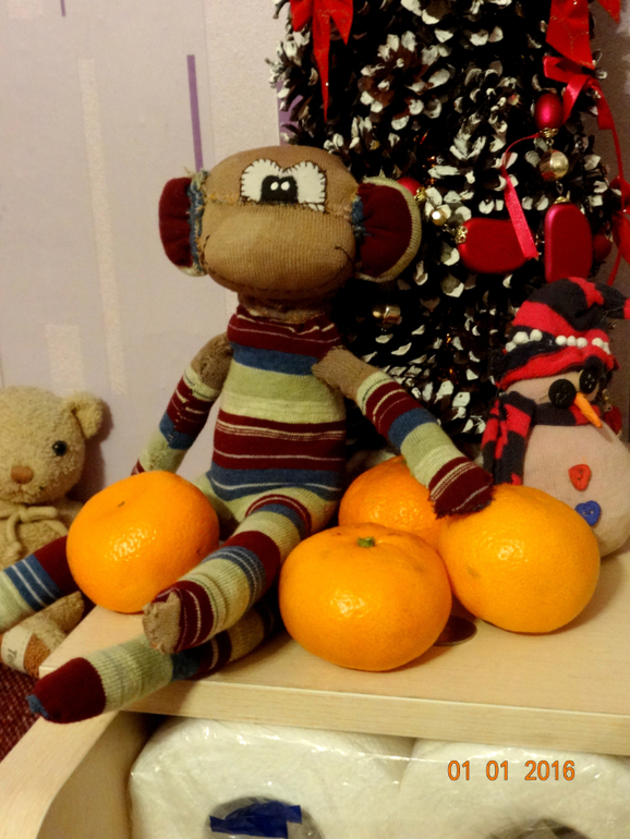 Ну и немного моего творчества,мартышка которую сделала перед Новым годом из носка!!!!
