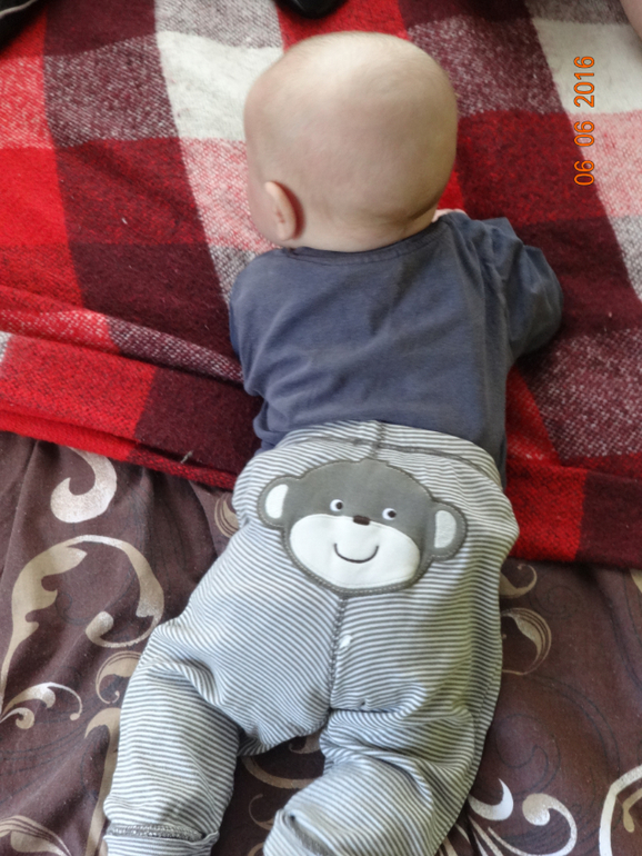 Любит лежать на пеленальном столике,разсматривает все,уже стал крученым не оставишь на столике одного,вот на коврике пожалуйста!на спине дрыкается скоро перевернется с животика уже умеем!