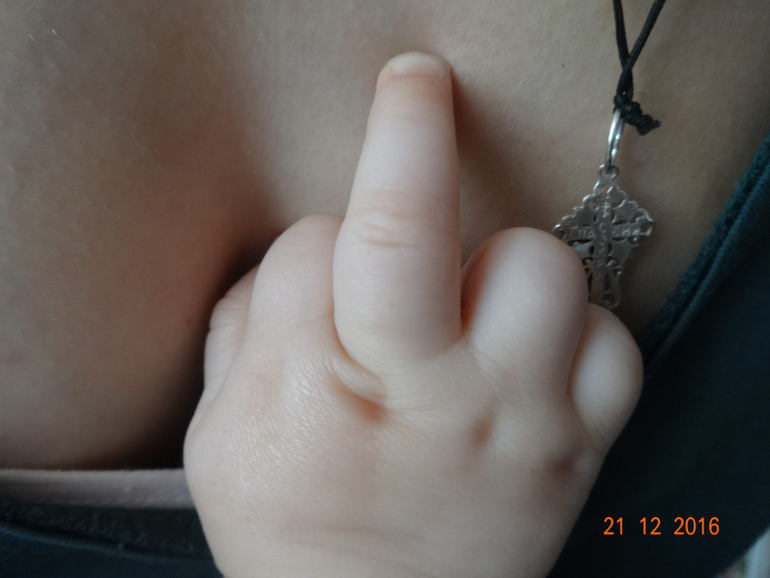 Это розвлечение №1,а еще нравится как я ему говорю где сися?и он начинает роготать и трогать нежно ее....ой блин скоронадо завязывать а то перерастет в привычку,может спать лучше будет?