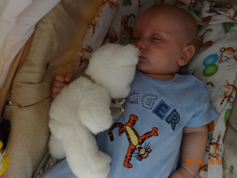 ,обажаю его он такой славный!!!!!часто лежит сам розвлекается,днем меньше спит,любит просто полежать,ночью уже две ночи спим вместе,плюнула я на все,каждый час просыпатся это слишком,я просто потом как робот,злая целый день и сонная