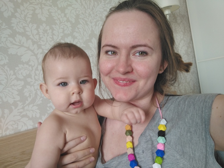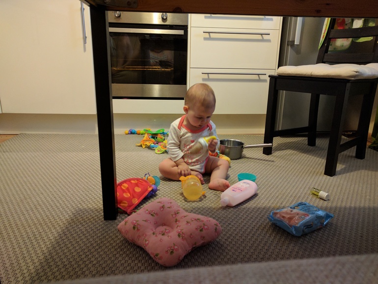Ну и в 9 месяцев и 3 дня прорезался один нижний центральный резец! Ехуууу! Не было температуры,ночи беспокойные за пару дней до,ставила два раза свечку Нурофен,потом Дантинорм начала давать и вот на утро 28.04 что-то заблестело))))) Варя не грызет никакие прорезыватели,их у нас всех видов и форм,ей надо все что угодно,только не игрушки ( Нравится кошелек,провода, наушники,пульты,силиконовые лопатки,начала грызть борт у кроватки)))