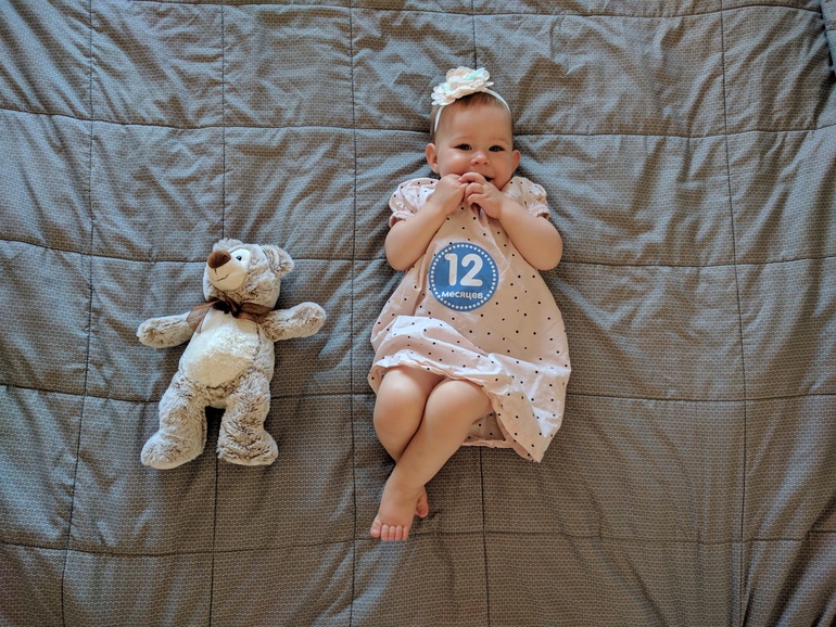 К году особенных умелок не было,ходит только под ручки,за ручки и у опоры,сама не ходит и не стоит практически.