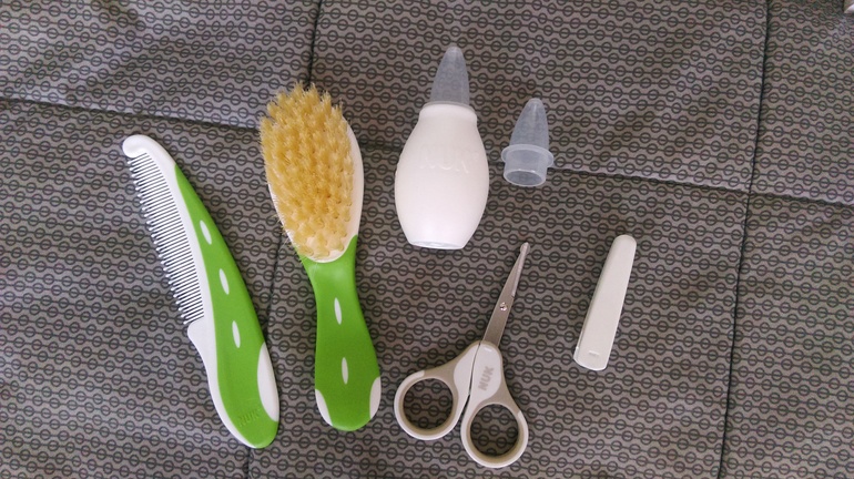 Набор расчесок, ножнички и аспиратор со сменной насадкой (все NUK)