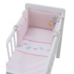 Комплект постельного белья купила в Mothercare. Он вообще на вырост, милый и рооозовый)))) В него входят бортики на половину кровати, плед длинный (розовый в белый горох), одеялко поменьше (розовенькое с полоской), две простыни (большие ненатяжные, белая и бирюзовая). Была на него скидка 50% (4299 руб). А так вообще дорого, без скидки не взяла бы.