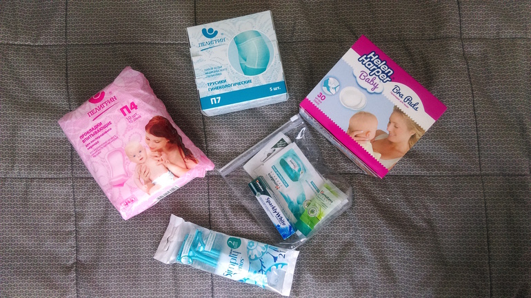Прокладки впитывающие Пелигрин, трусики одноразовые Пелигрин 5 шт, накладки для груди в индивидуальных упаковках, станки с собой в РД, набор мелких тюбиков зубной пасты, геля для умывания, скраб, крем для лица.