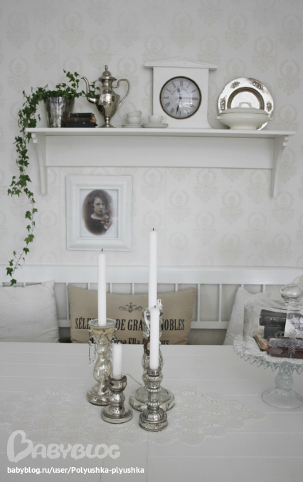 Это, один из самых моих любимых интерьеров в стиле шебби-шик. Может быть, самый любимый. Дом Астрид в Норвегии. Он запал в мое сердце. Он живет там. Очень нежный, красивый, изысканный, женский. Невероятное количество всяких милых вещиц. Сколько труда, любви, времени вложено в этот дом. Как можно содержать все это добро в идеальном порядке, мне неведомо. Я в своей однокомнатной квартире не могу его навести. Я в восхищении. Это - просто поэзия в вещах. Да!